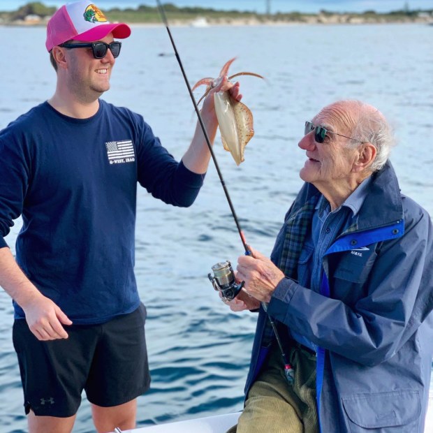 James Graham enjoys fishing for squid, going cast for cast with his 98-year-old grandfather Deryck Graham.